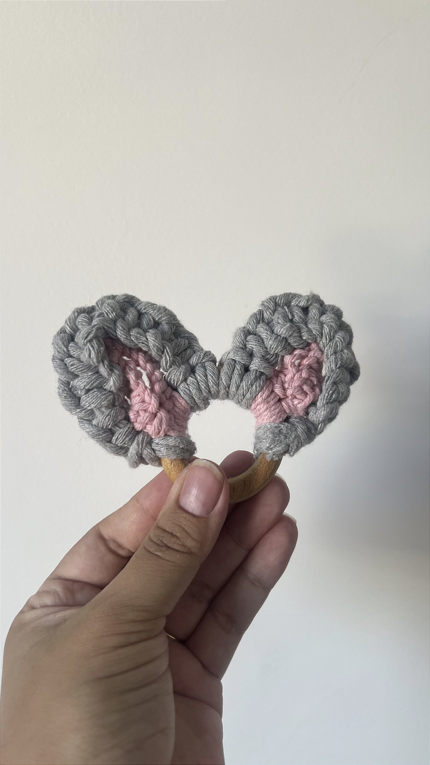 Feito manualmente em macramê nas cores cinza e rosa, ele traz uma combinação suave e acolhedora, perfeita para criar uma mesa de Páscoa elegante e afetiva.